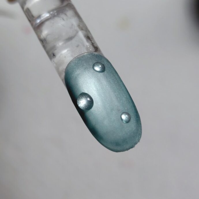 やり方は、マグネットジェルをマットトップで仕上げたら、水滴のようにクリアのトップをポイントで垂らすだけ。