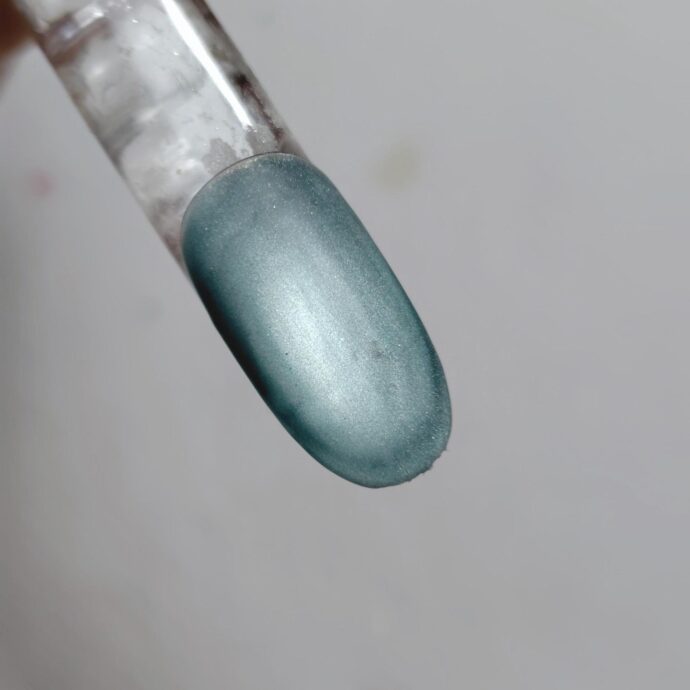 マグネットジェルにマットトップを塗ると、表面の光沢が抑えられるだけでなく、ツヤがある時よりも、ベースカラーがよりはっきりと目立ちます。