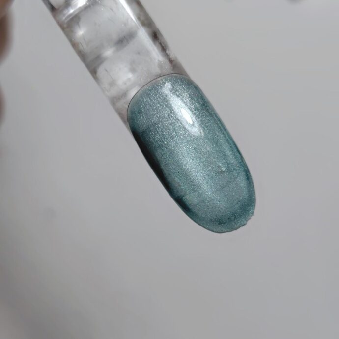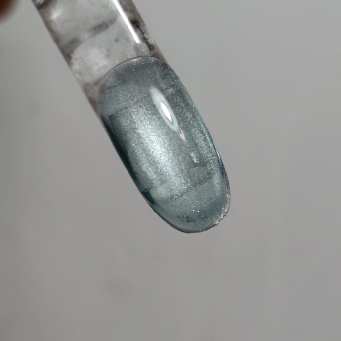 マグネットジェルにマットトップを塗ると、表面に滑らかな透明感が生まれ、サラサラとした質感に。