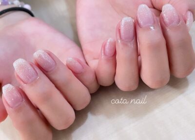 ラメグラはシンプルで定番のデザインですが、ギラギラ系ラメではなく、乳白色系ラメを使用することで今風のシンプル可愛い仕上がりになります。